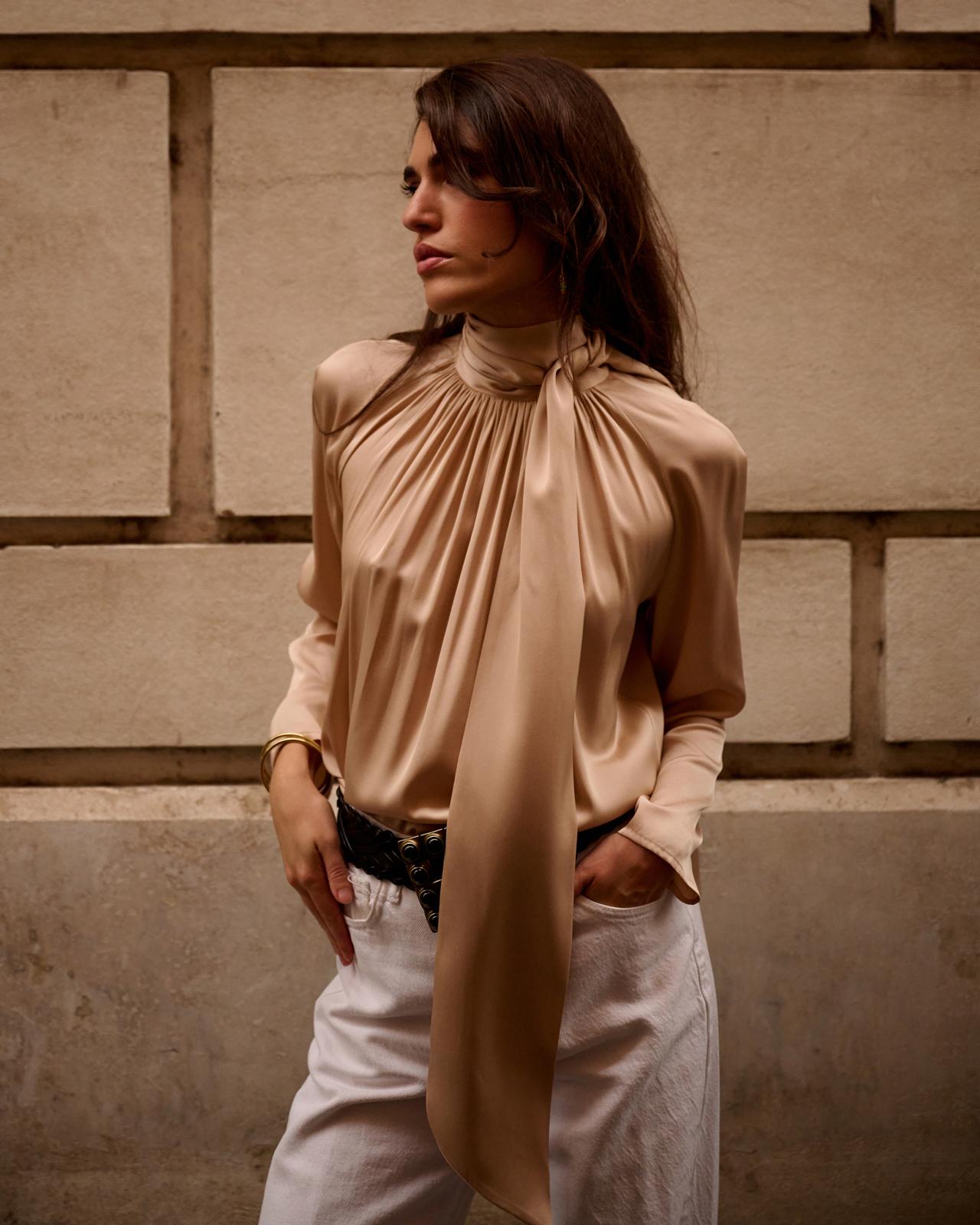 La blusa in pura seta che non ti stanca mai, il collo alto che slancia la silhouette e la lavallière da annodare al collo in mille modi, la rendono la blusa ideale per completare ogni outfit.