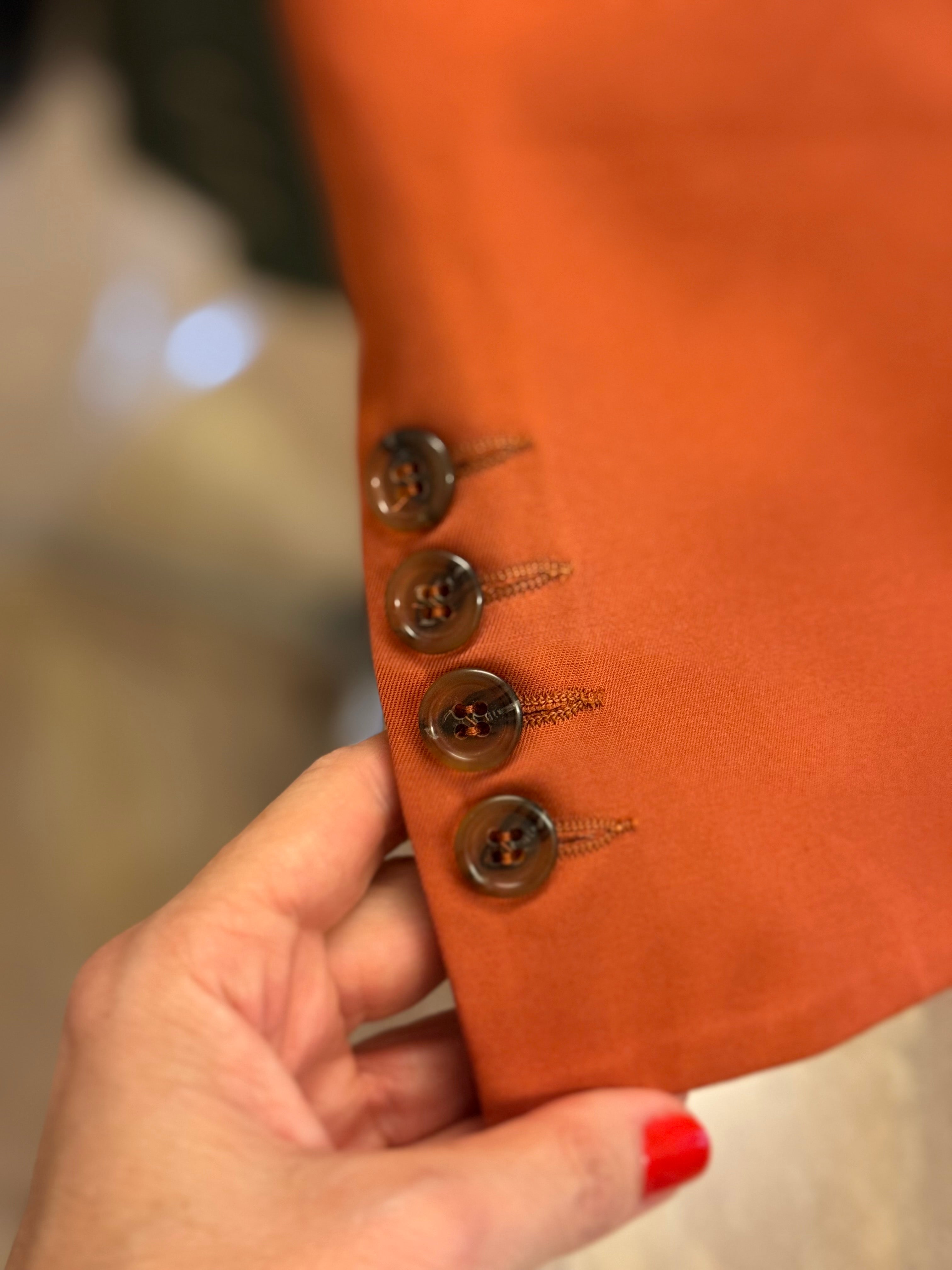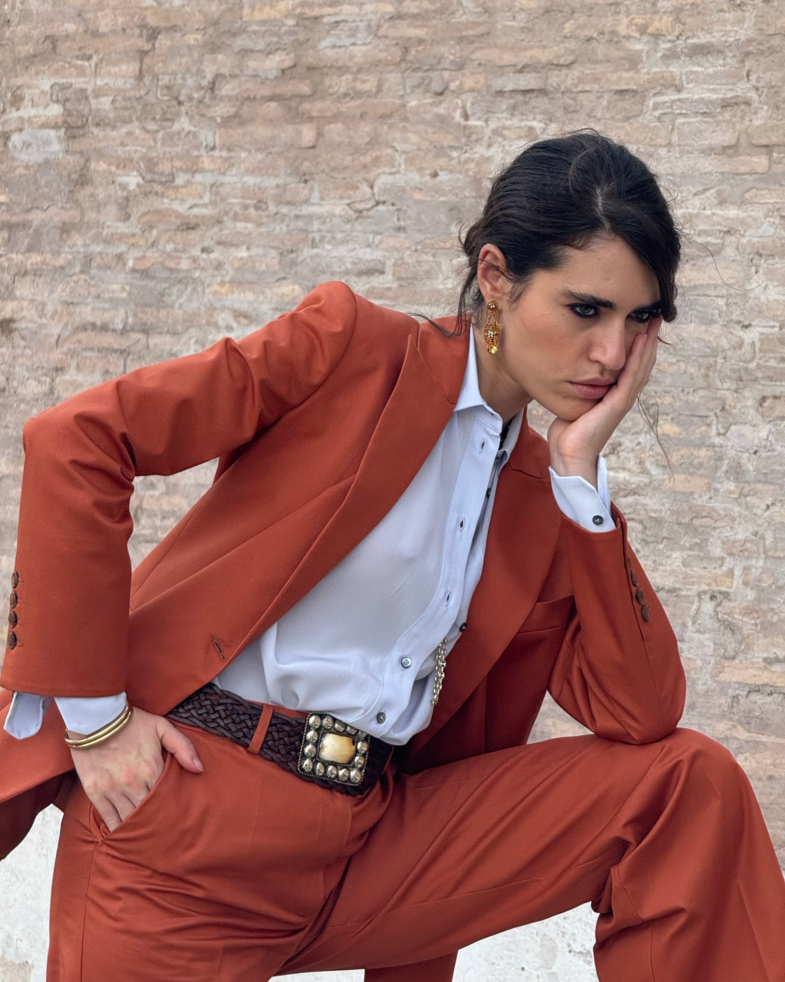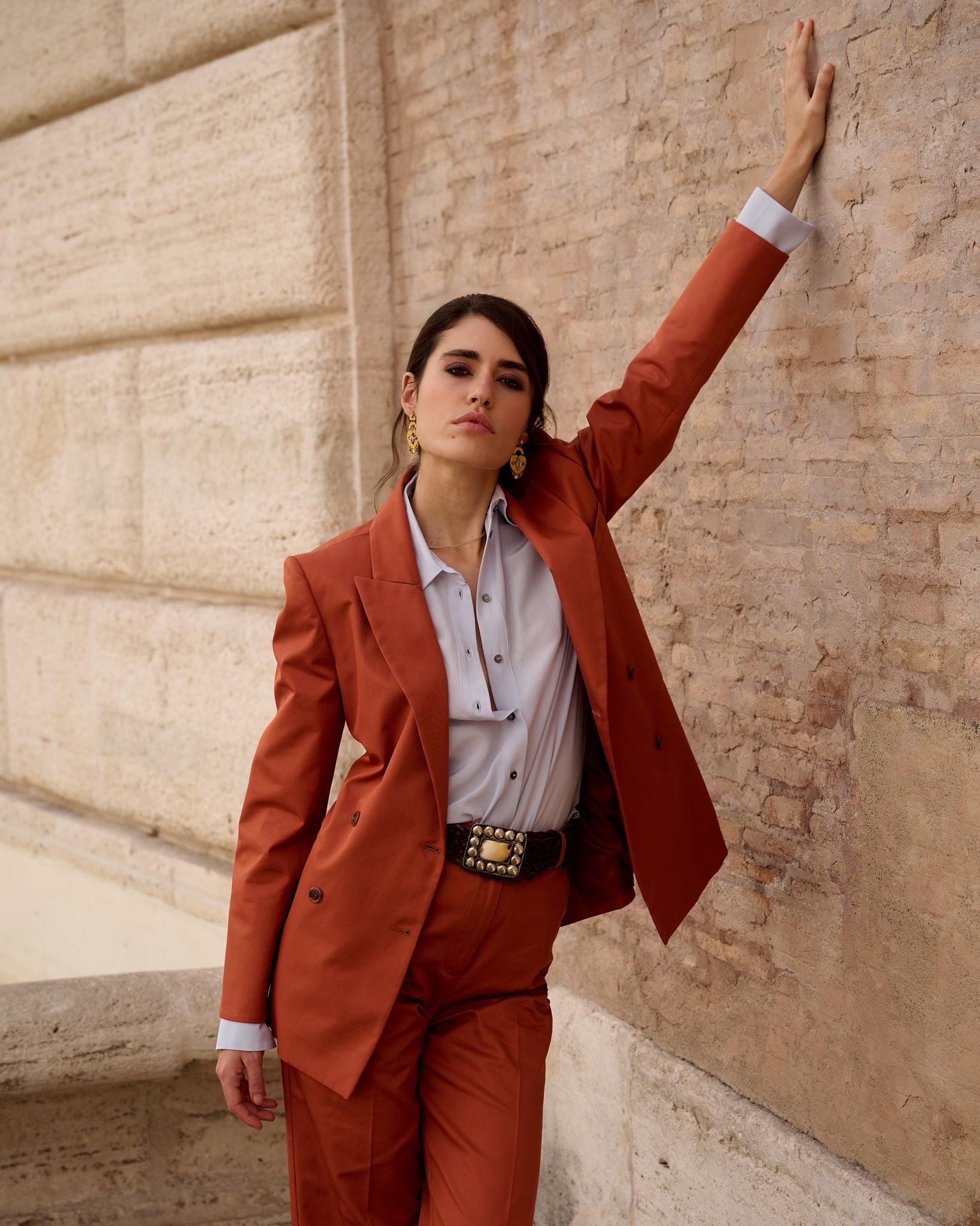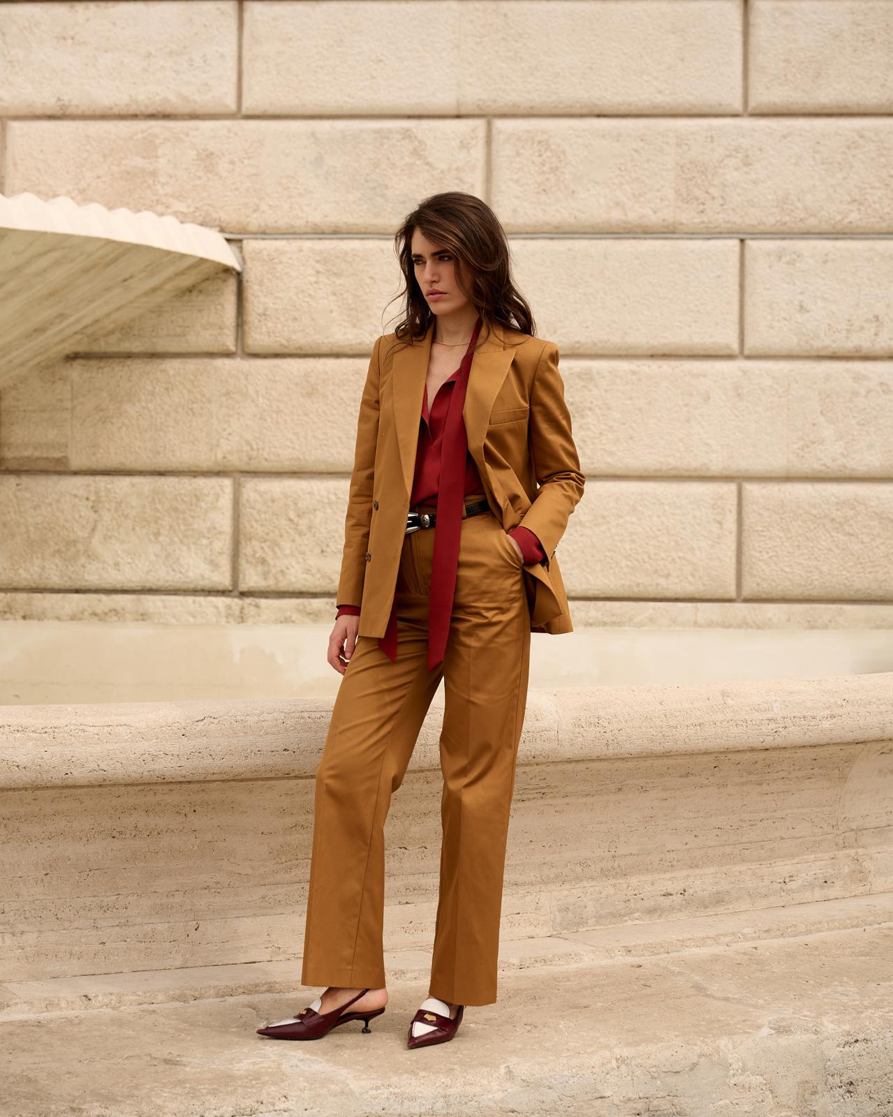 Un completo sartoriale che gioca nei toni speziati della stagione: Mostarda, un senape sofisticato e versatile, e Paprika, una tonalità "arancio" intenso e luminoso, dove il colore e la costruzione sartoriale esaltano l’identità personale