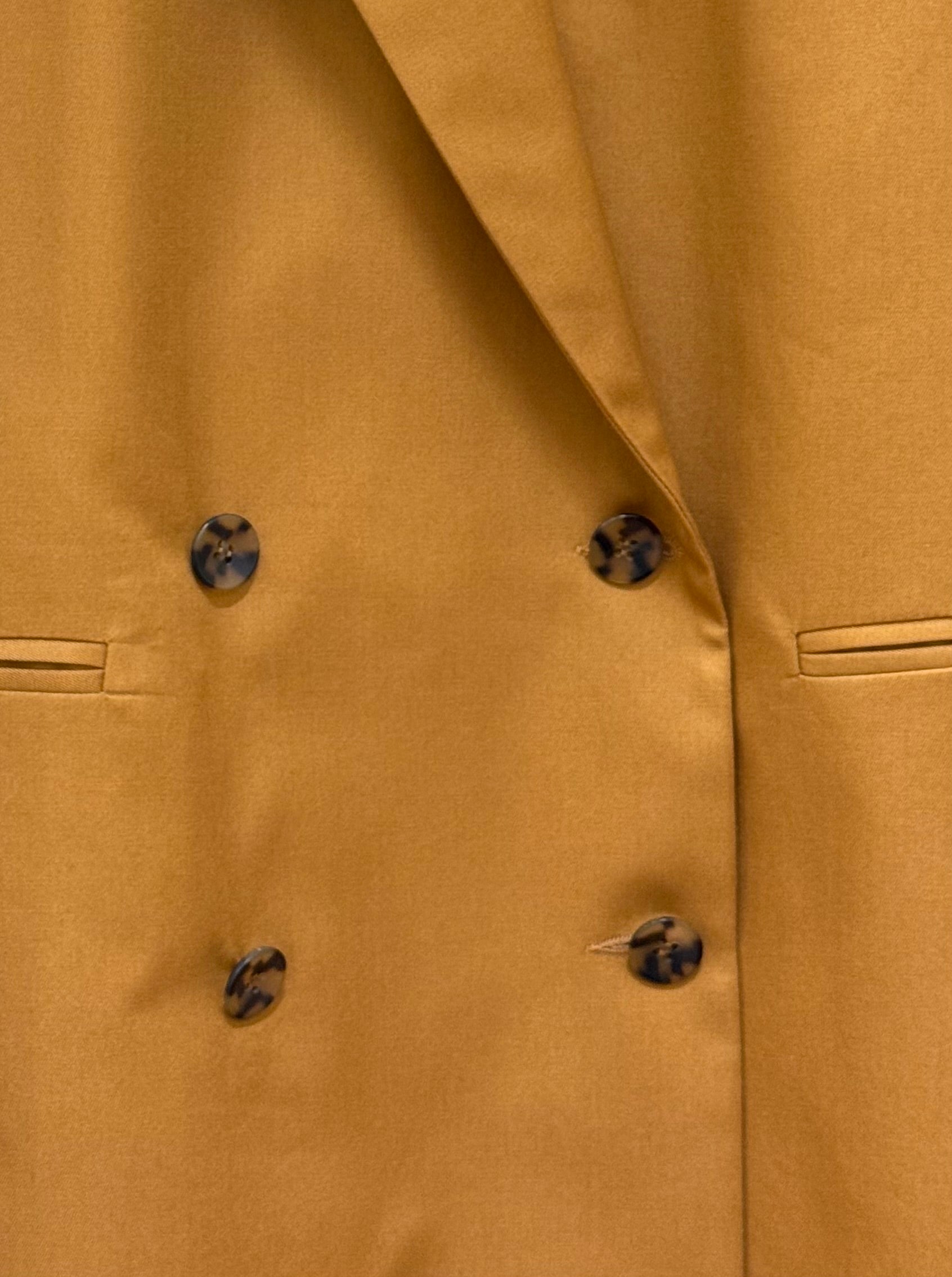 Il taglio rigoroso, i rever a lancia,le spalle leggermente imbottite,  i bottoni effetto naturale tartaruga, esaltano la costruzione naturale, mentre i colori inediti aggiungono personalità al guardaroba.