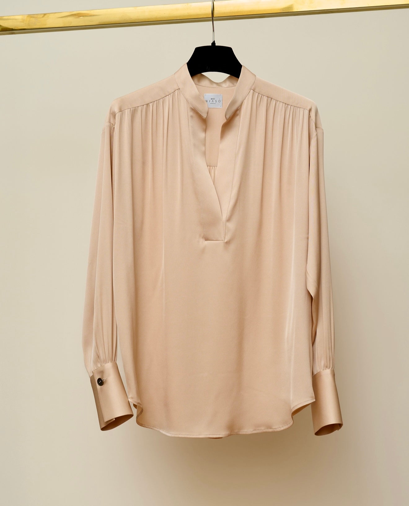 • 100%seta - crêpe de chine • Fit morbido • Arricciature sartoriali avanti e sul retro • Manica morbida • Bottoni ai polsi alti 10